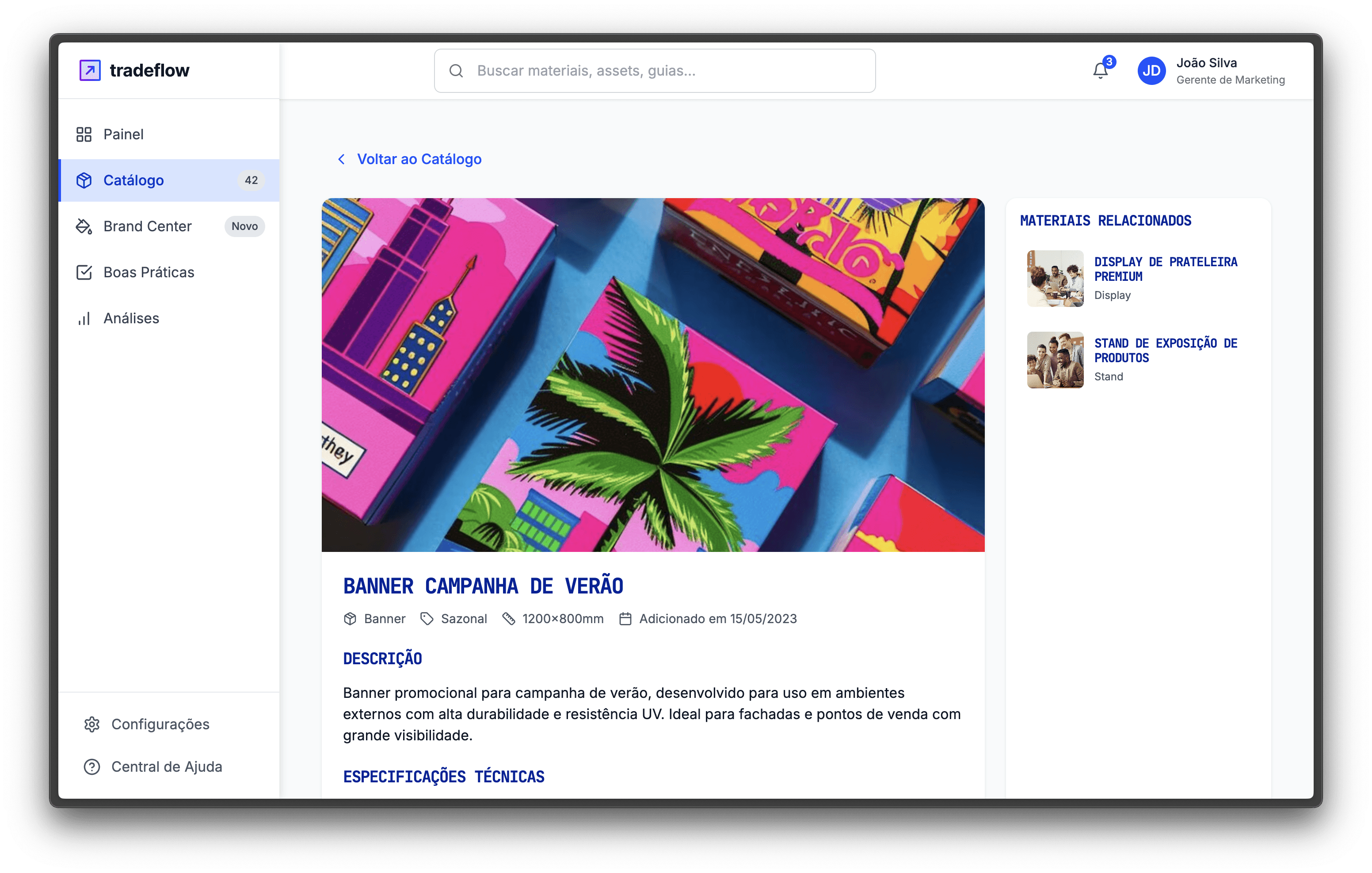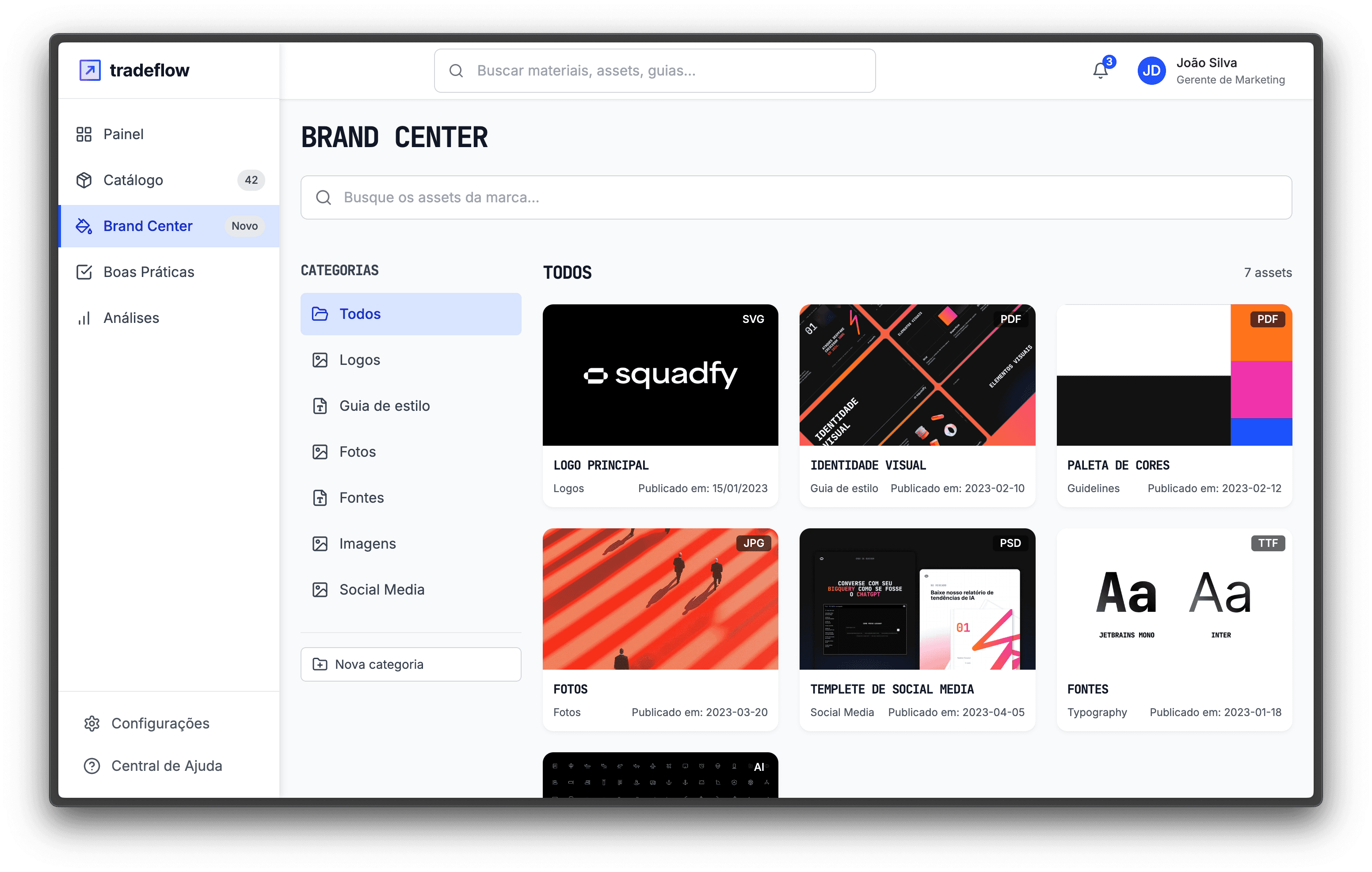 The Brand Central ensures that all units and partners use the correct materials. Manage assets by category, control versions, and facilitate access to original files while keeping your brand's visual identity consistent.