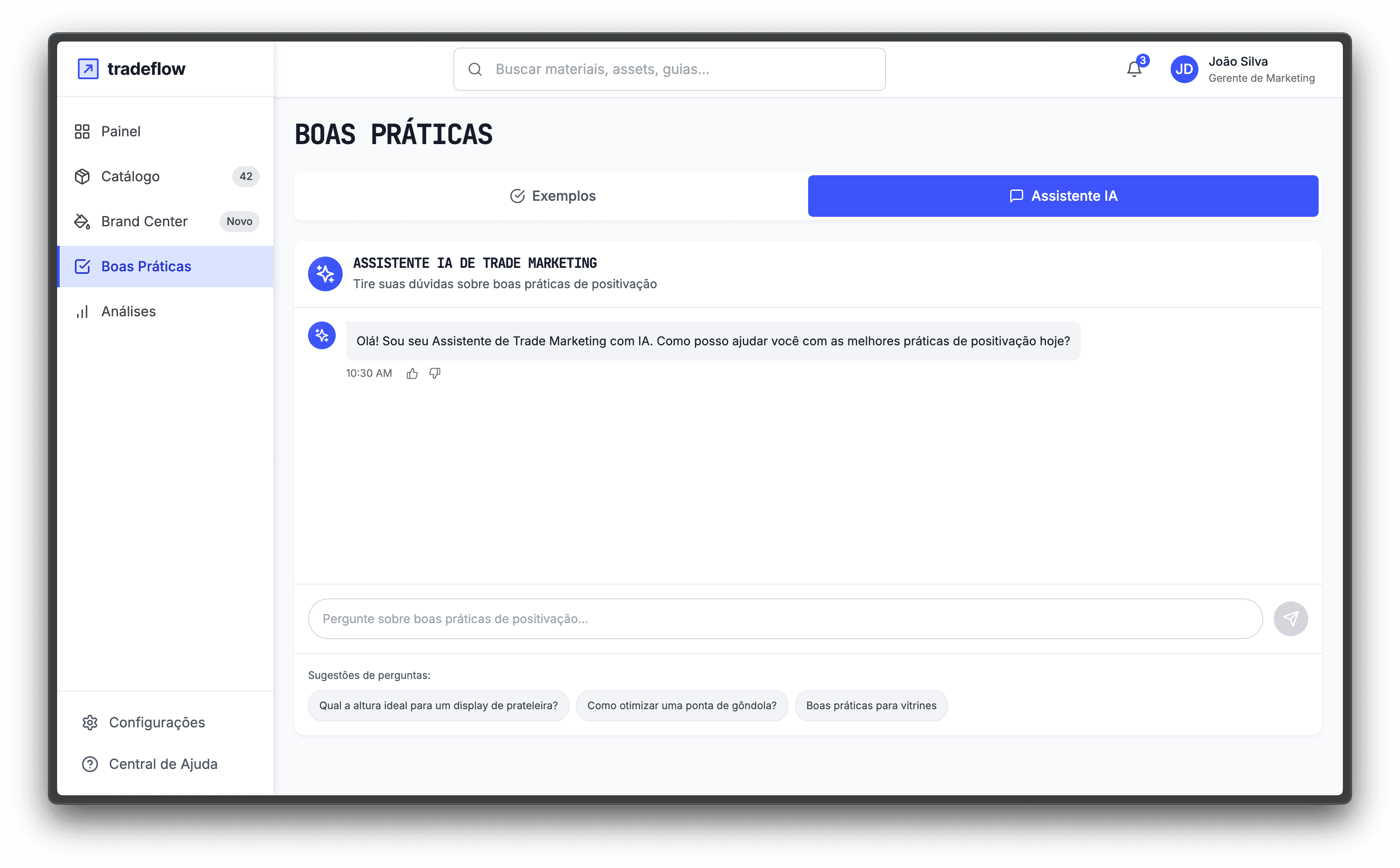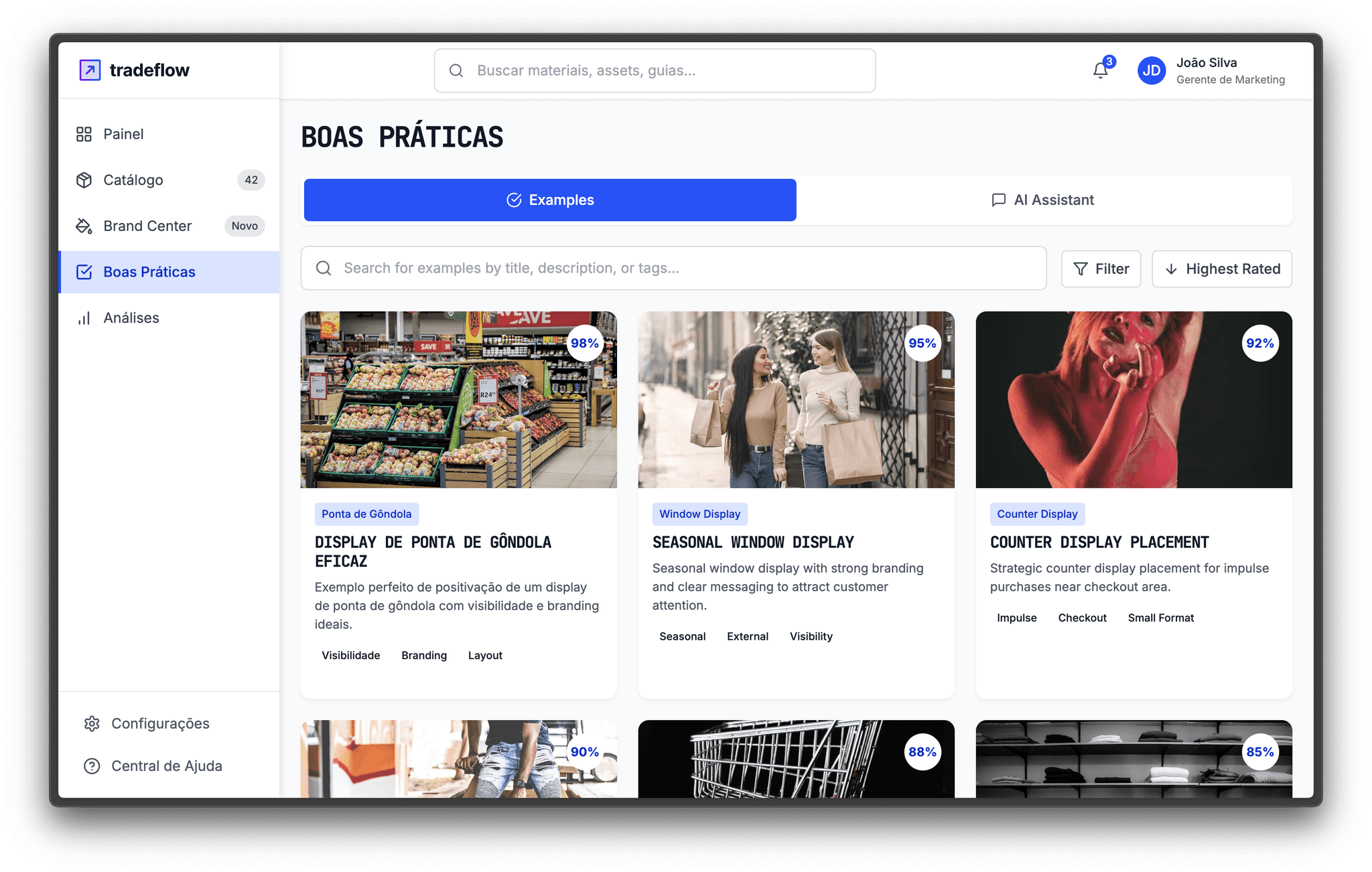 Share best practices with your team through case studies, real implementation examples, and automated evaluations. An AI chatbot is available to answer questions and guide the correct use of materials, increasing efficiency and reducing errors at the point of sale.