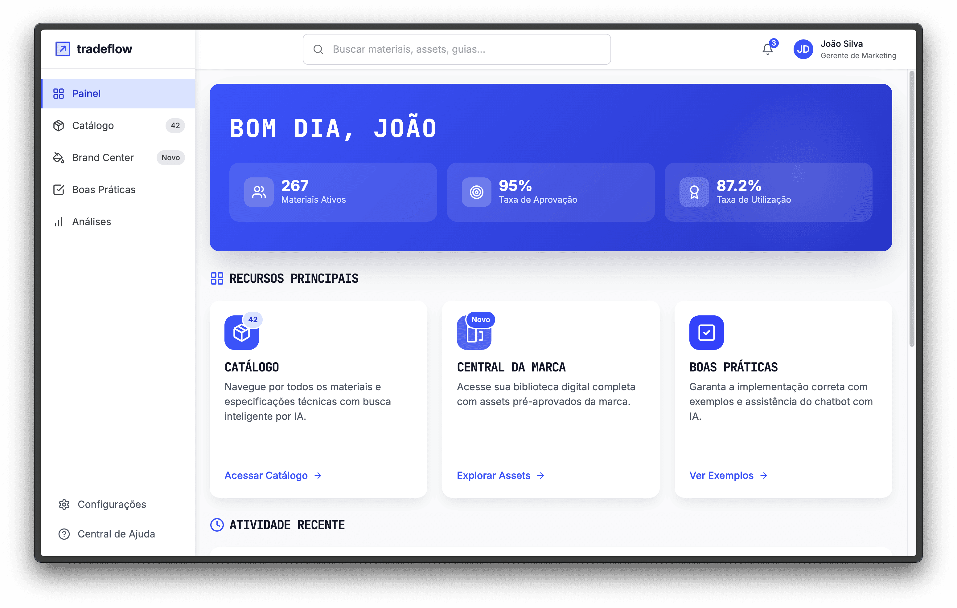 With Tradeflow, you centralize the work of the trade marketing team and representatives, reduce the operational communication effort by up to 30%, and monitor everything in real time with a simple and efficient interface.