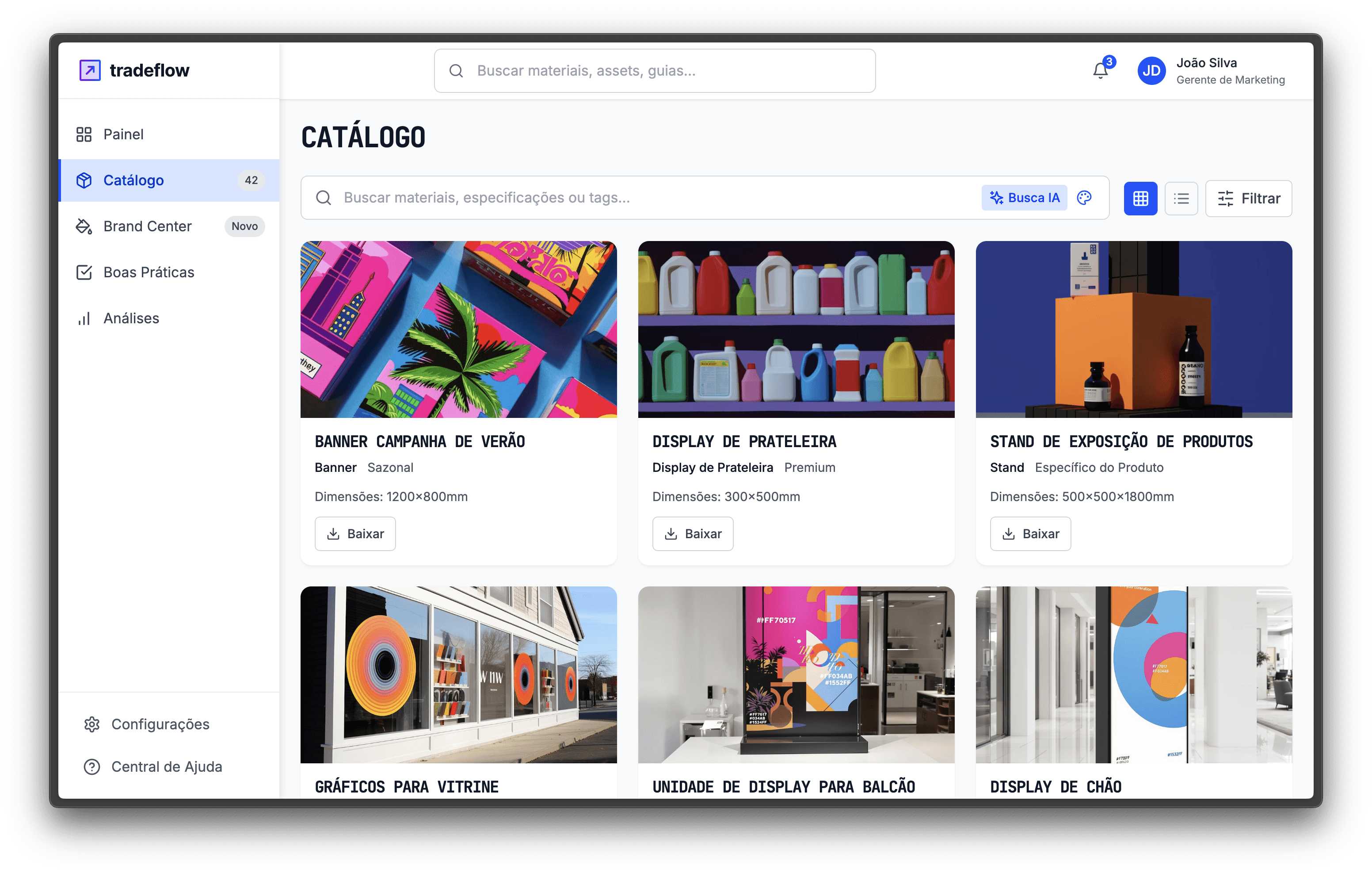 With the Materials Catalog, your team has access to a visual and organized library of POS materials. Use the smart search, filter by campaigns, formats, or regions, view in list or grid, and download files quickly. Reduce noise, gain scale.
